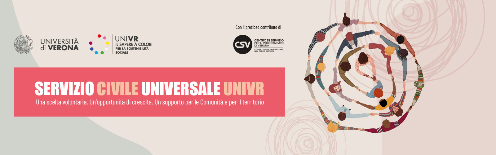 L’Università di Verona ospita da molti anni progetti di Servizio Civile Universale presso l’UO Inclusione, nei quali le volontarie e i volontari operano a beneficio di studentesse e studenti con disabilità o disturbi specifici di apprendimento.